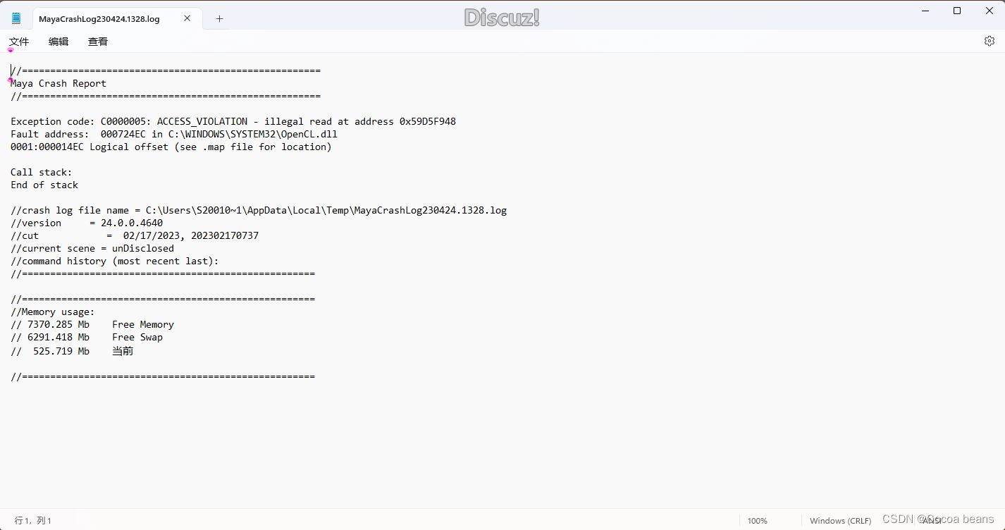 全重新安装maya即可。 其他解决方案:方法一: 默认情况下,Maya USD正在加载,并导致了冲突。 要避免此行为,请使用以下解决方法: 1、默认安装位置打开:C:\Program Files\Autodesk\Maya2024\resources\l10n\zh_CN 2、用记事本打开“MayaStrings”文件,搜索字符串“rWorldStrId”,并将单词“World”替换为“world”,也就是将大写的W替换为小写w。 如下: 替换为 3、保存再重新启动Maya。 方法二: 查看日志发现是OpenCL导致,只需打开 C:\Username\Documents\maya\20xx\maya.env 后在该文件中复制该语句: MAYA_DISABLE_OPENCL=1 禁用OpenCL即可正常打开使用 |
