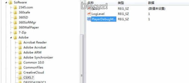 温馨提示:其它版本Photoshop以CSXS.X数值最大的目录下新建字符串值注册表