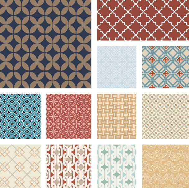 复古清新几何四方连续无缝贴图案拼花纹底纹AI矢量设计素材背景77款