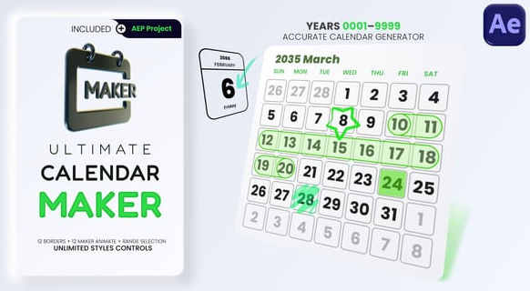 AE日期日历日程展示事件倒计时工作日历动画模板 Ultimate Dynamic Calendar Toolkit