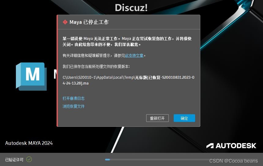 启动Maya软件的时候,提醒:停止并显示以下错误,然后软件崩溃了,该怎么结解决呢?下