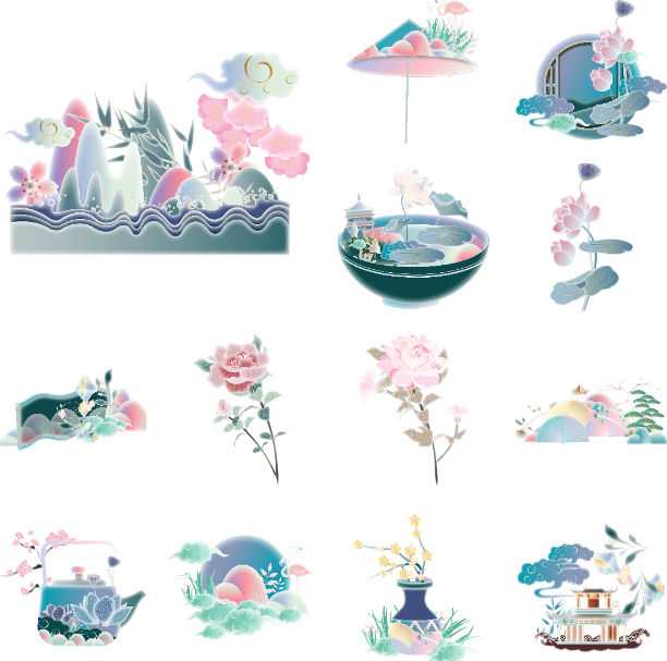 素材介绍:本作品内容为新中式插画图案渐变淡雅高级国风艺术装饰AI矢量PNG免抠图设计素材53款, , 大小0.317 GB; 欢迎使用。